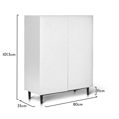 With a contemporary textured geometric design on the front of the doors this elegant white shoe cabinet will bring a crisp and modern look to any home, with the added practicality of providing ample storage space.
