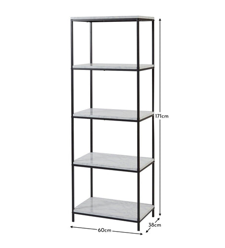 Modern and stylish, the Jay bookcase in a marble and black colourway provides an elegant shelving solution with an industrial twist, perfect for any interior design look and feel. Complemented with its sleek black frame, the Jay bookcase will add a minimal and contemporary finish to your home.