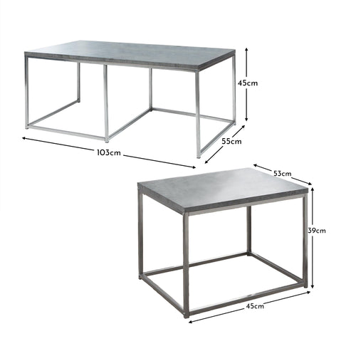 Jay Concrete Effect Coffee Table Set - Chrome Frame