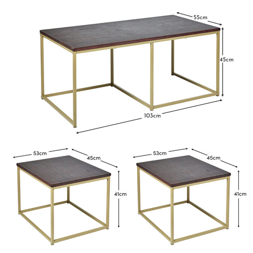 Transform your living room with this coffee table and pair of side tables that will level up your living room style. The Jay features a glamorous gold frame and a warm walnut effect table top. This lavish colour combination gives an effortlessly elegant feel to any living space. This coffee table set can be spread across your living room or styled as a nest of tables.