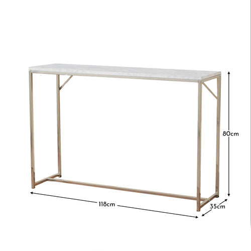 - Set Includes - 1 x Jay console table in marble effect and gold.