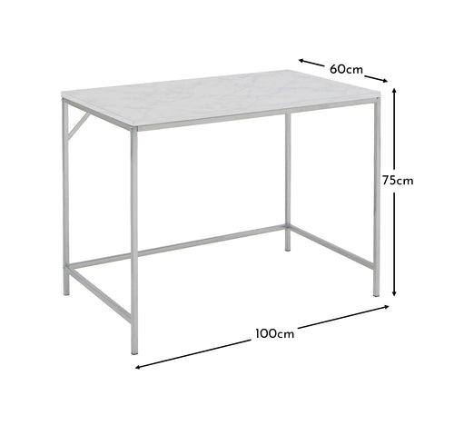 Jay features a chrome frame which is beautifully complemented with a white marble effect top making it a perfectly stylish place to work. The clean lines from the sleek frame create a contemporary feel, making it easy to incorporate into any décor style.