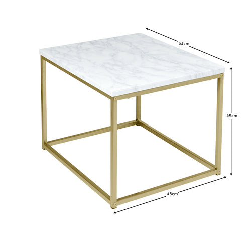 - Side table with a marble effect table top and gold effect frame