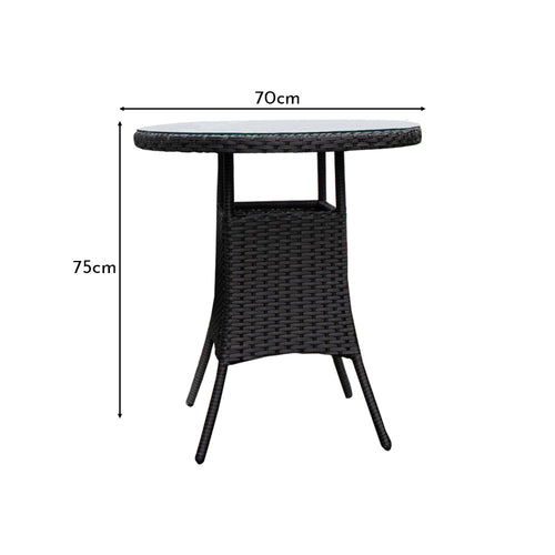The Kemble grey rattan garden bistro table is perfect for outdoor dining and entertaining.  Featuring a tempered glass tabletop, this table is sophisticated and stylish and is perfect for smaller garden spaces.