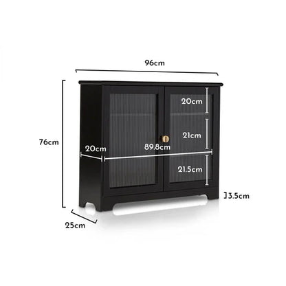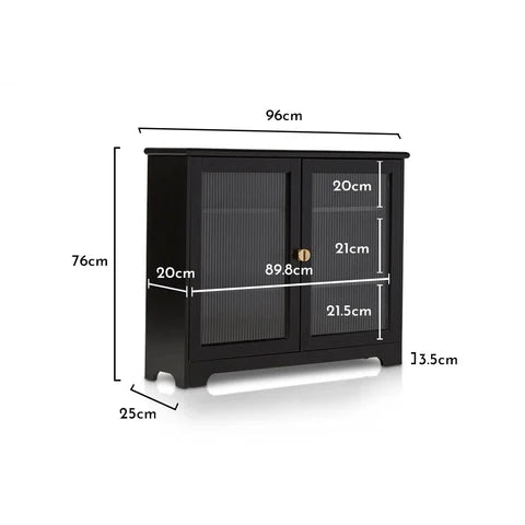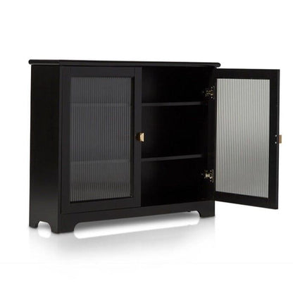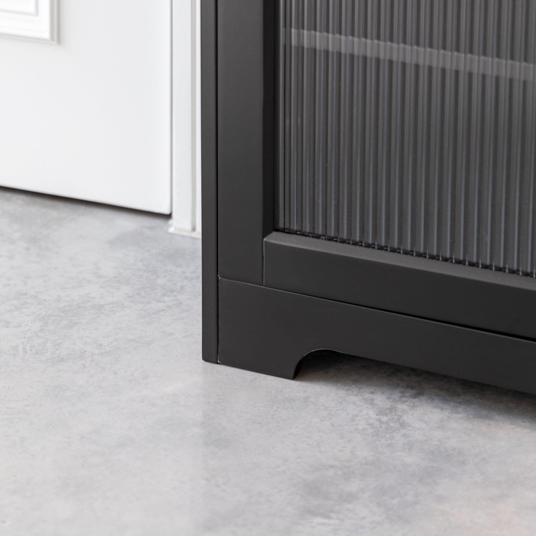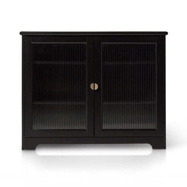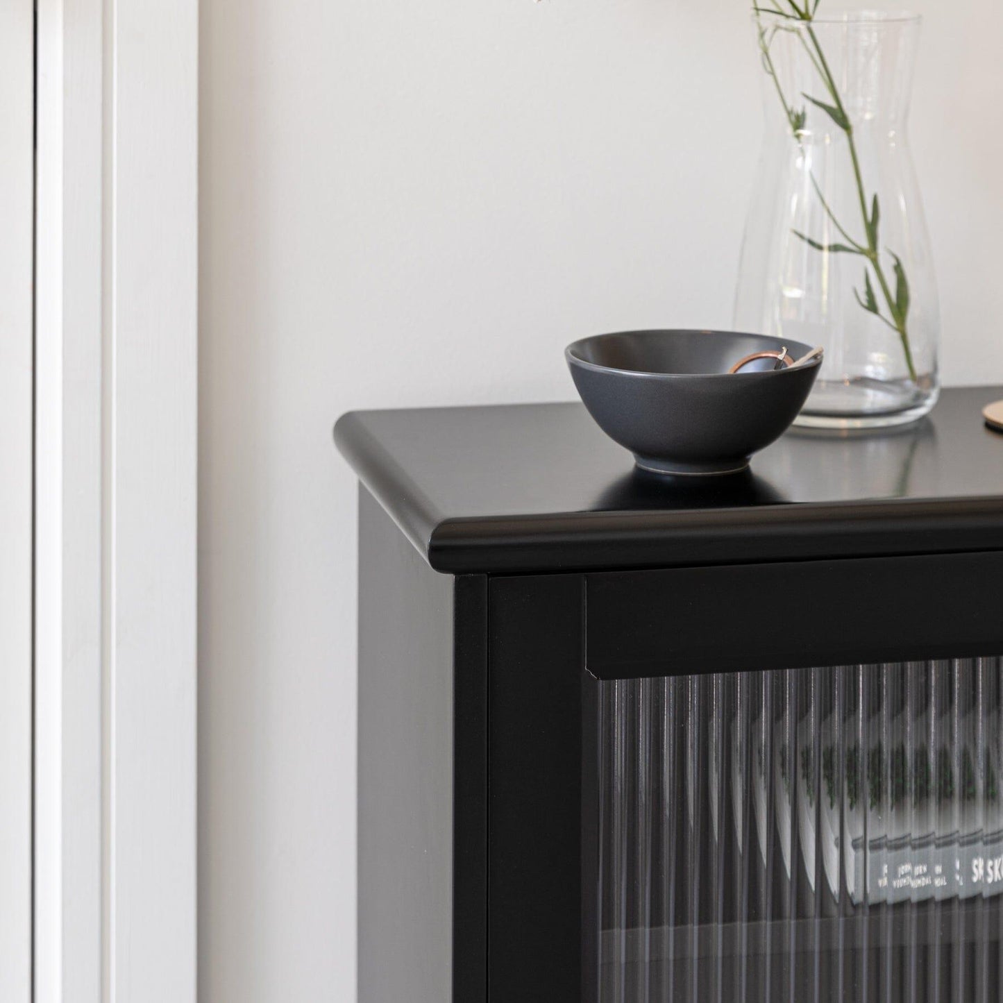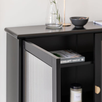 Lua Narrow 2 Door Sideboard in Noir Black with Fluted Glass - Laura James