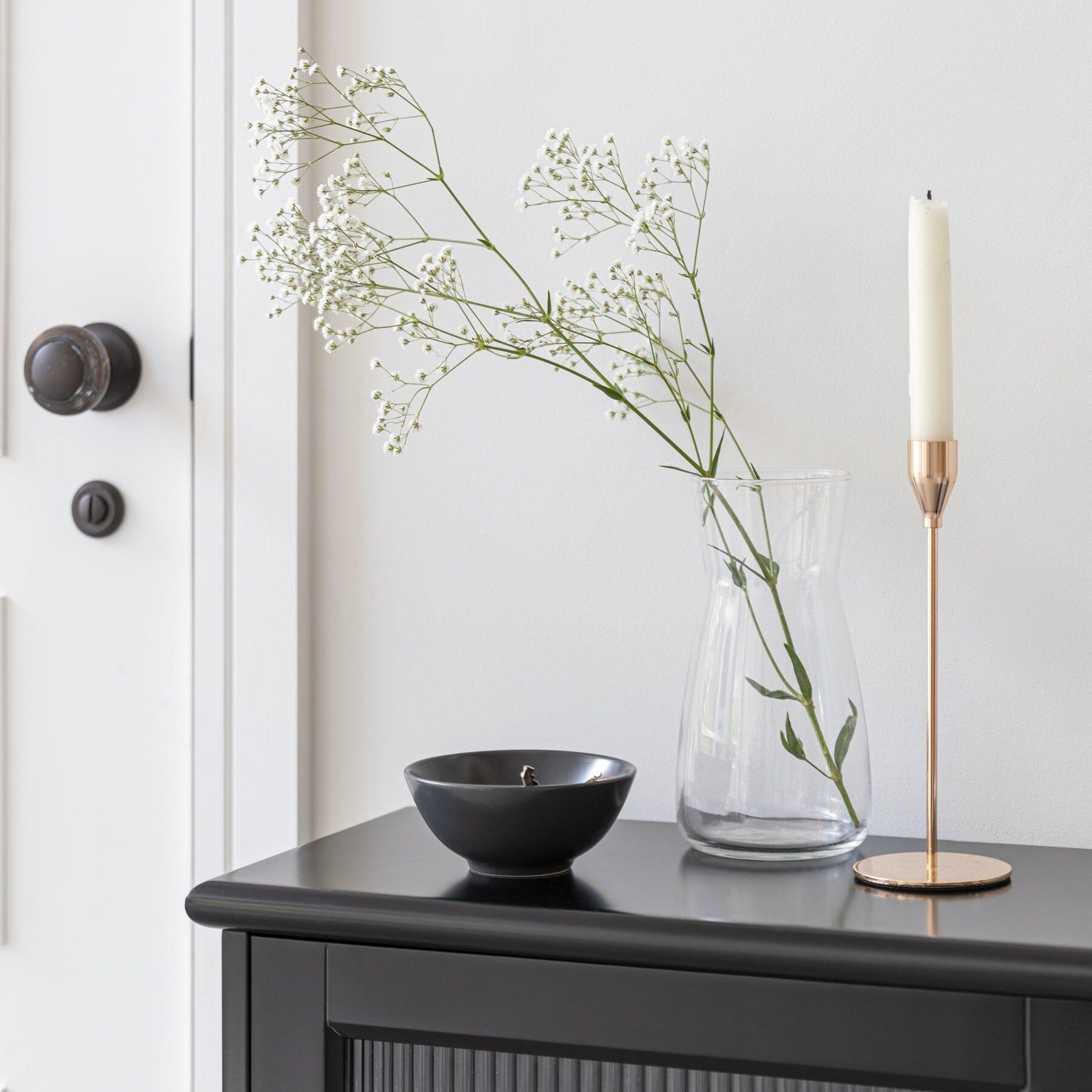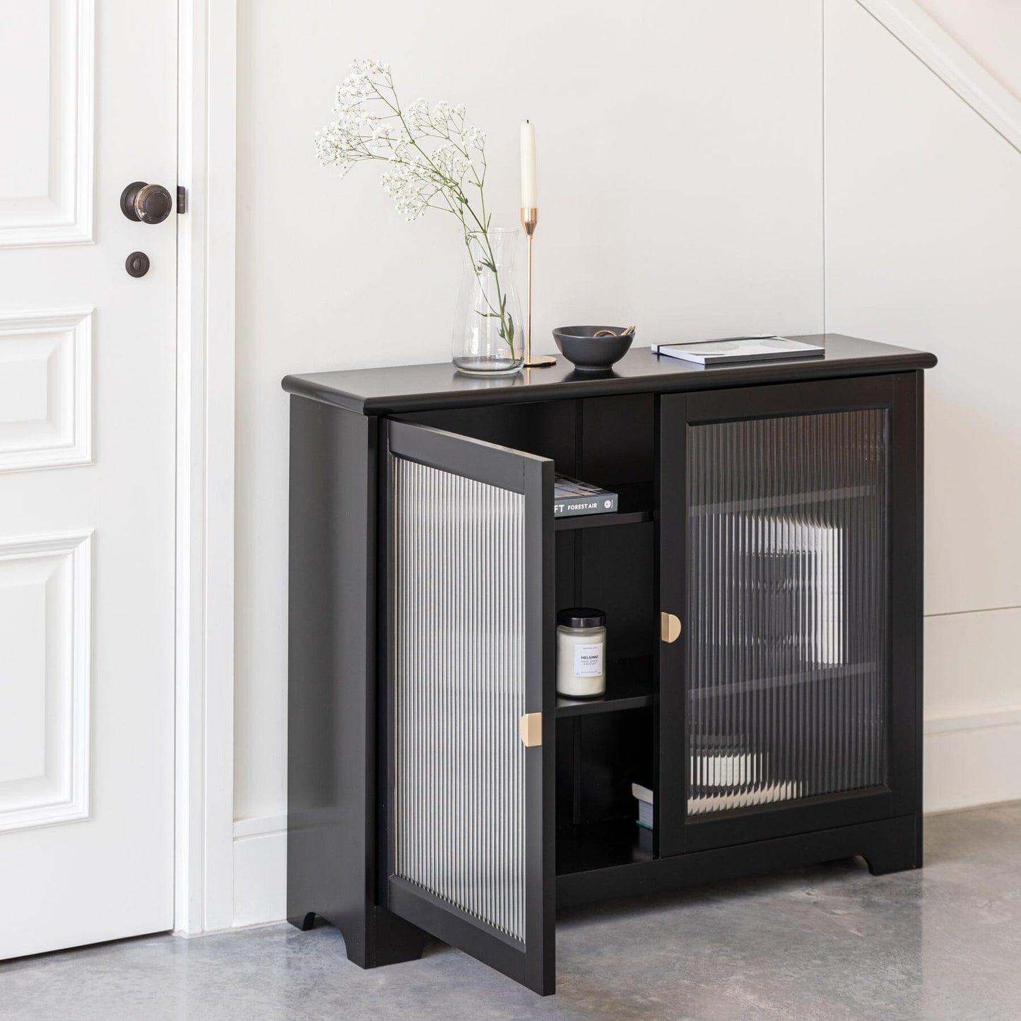 Lua is the most stylish storage solution ever! The combination of fluted glass, gold metal handles and the noir black colourway makes this cabinet a truly elegant addition to your living or bedroom space.