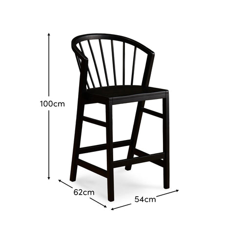 The Mabel black barstool features a highly attractive spindle design with curved arms, creating an ergonomic and stylishly modern furniture piece that is sure to enhance your kitchen/dining area.