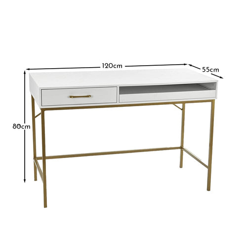 Increase your productivity with our Marie desk, a stylish workstation that’ll inspire productivity. With clean lines and trendy accents, Marie is a modern desk in white with brass effect legs and handle.