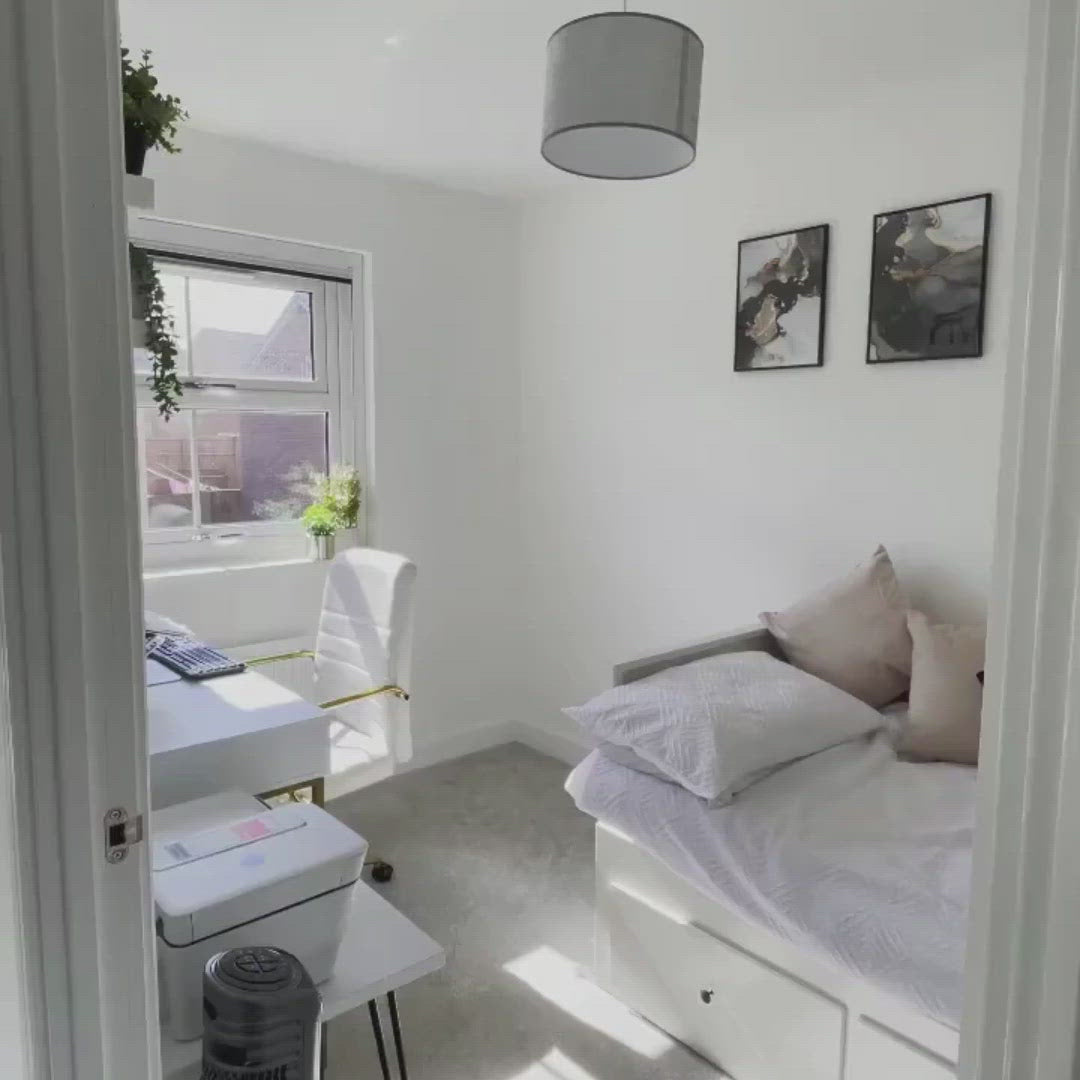 Our Marie white office desk is an essential addition to any workspace, adding subtle sophistication to your space. It features a small drawer for stationery and a pull-out drawer for a wireless keyboard and mouse, keeping your space neat and organized. A tidy desk sparks joy and promotes a tidy mind.
