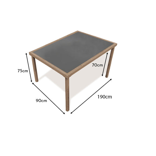 Embrace the joys of open-air dining and summer celebrations with this expansive natural brown rattan dining table, designed to comfortably accommodate 8. Infusing classic allure with a contemporary edge, it stands as a perfect centrepiece for your outdoor occasions.