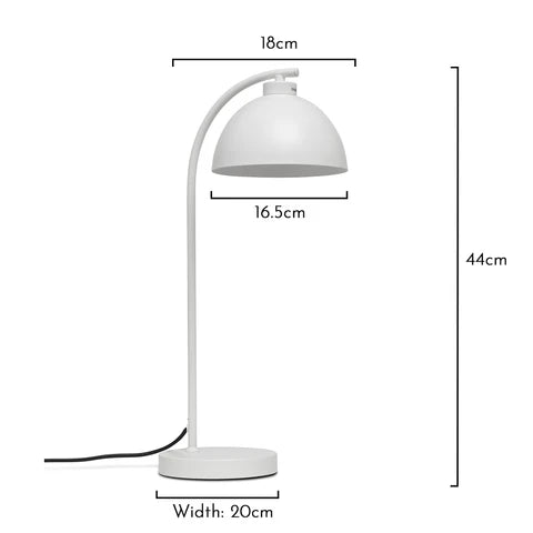 The Ashwick white metal dome table lamp is the ideal home accessory to brighten up your room. The sleek metal dome adds shape and class, whilst ensuring effective lighting for any space.