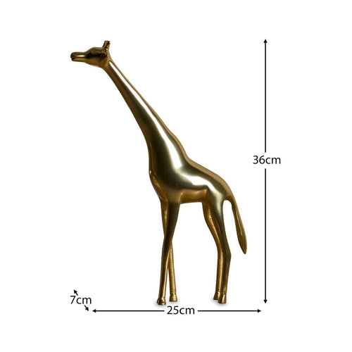 The Nakuru gold metal giraffe ornament will make a charming addition to your home. Finished in gold for a contemporary and chic look this standing giraffe ornament will add interest and character to open shelves or a console table