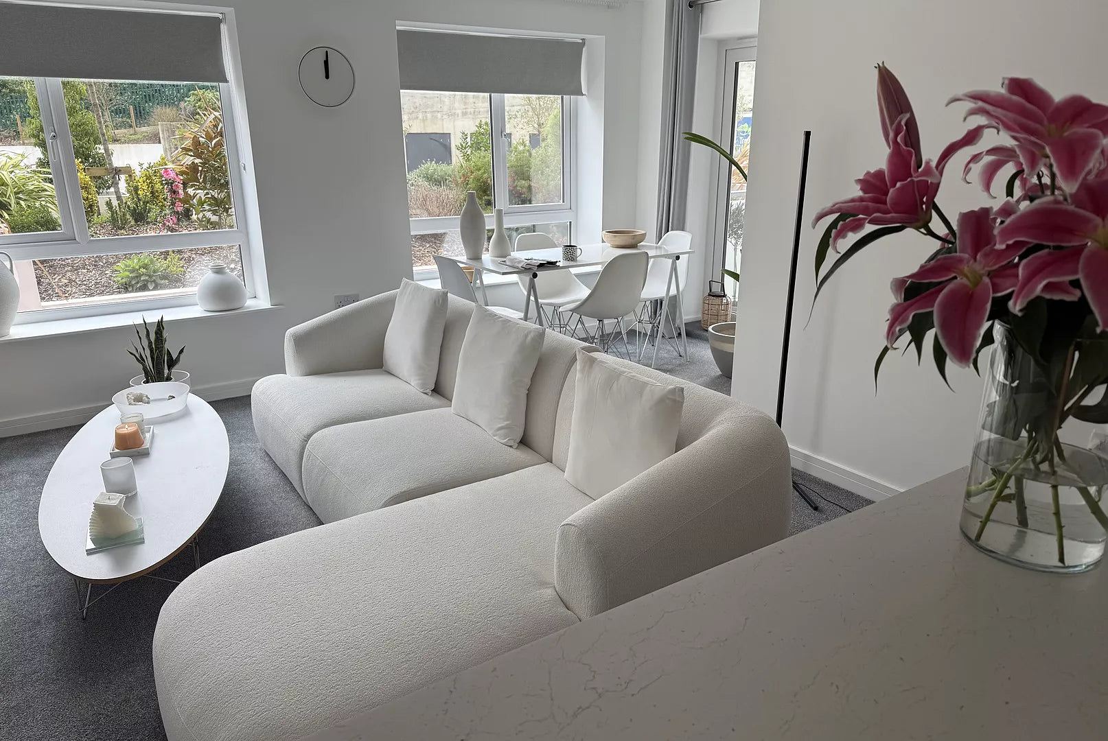 Nathalia Chaise Corner Sofa - Chalk White Boucle - Laura James