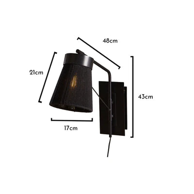 The Neri plug-in wall light, with its textured black cotton string lampshade and sleek black rectangular wall fitting, provides a bold and unique lighting solution. Neri complements any color scheme beautifully, creating the perfect ambiance with its warm glow diffused through the black cotton string design.