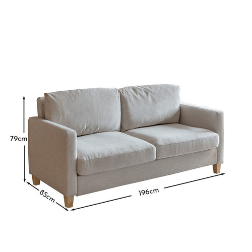 This Ava 3-seater beige sofa with its streamlined proportions and cushions you can sink into, ensuring an comfortable and cosy lounging experience every time. Enjoy endless relaxing nights in front of the tv with family on the Ava beige sofa.