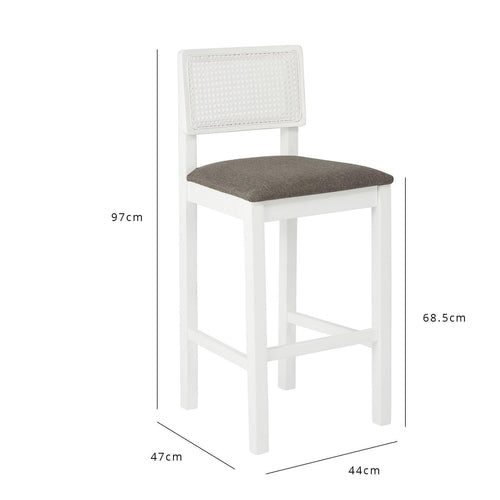 Incorporate the cane trend into your kitchen with this beautiful Charlie bar stool. Featuring a woven rattan style backrest with a simple white frame, this cane bar stool will be a highlight of any kitchen or dining space.