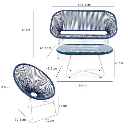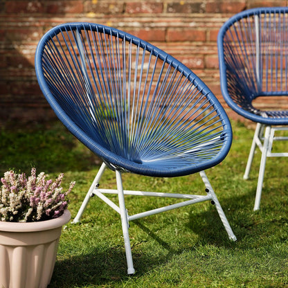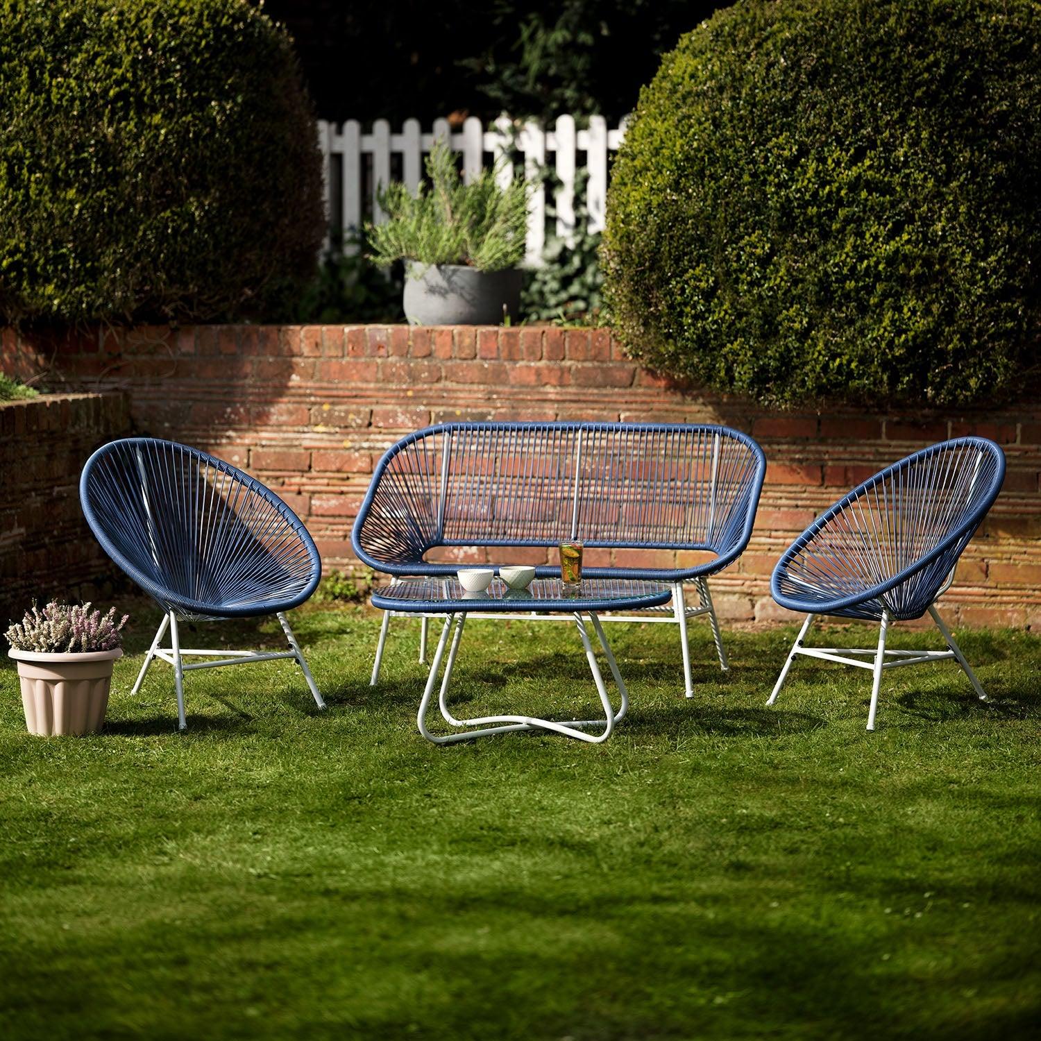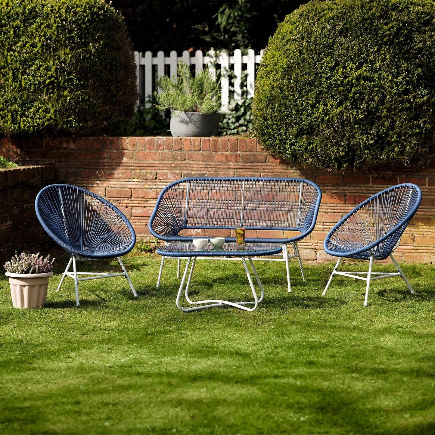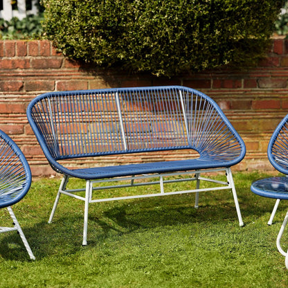 Relax and unwind in style with the Hebe garden lounge set in blue. This fun garden sofa and bistro chair set is perfect for enjoying some afternoon sun. Great for those with smaller gardens, or looking to add a stylish twist to their outdoor space.