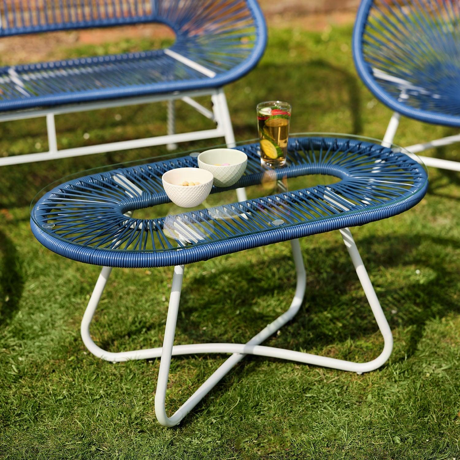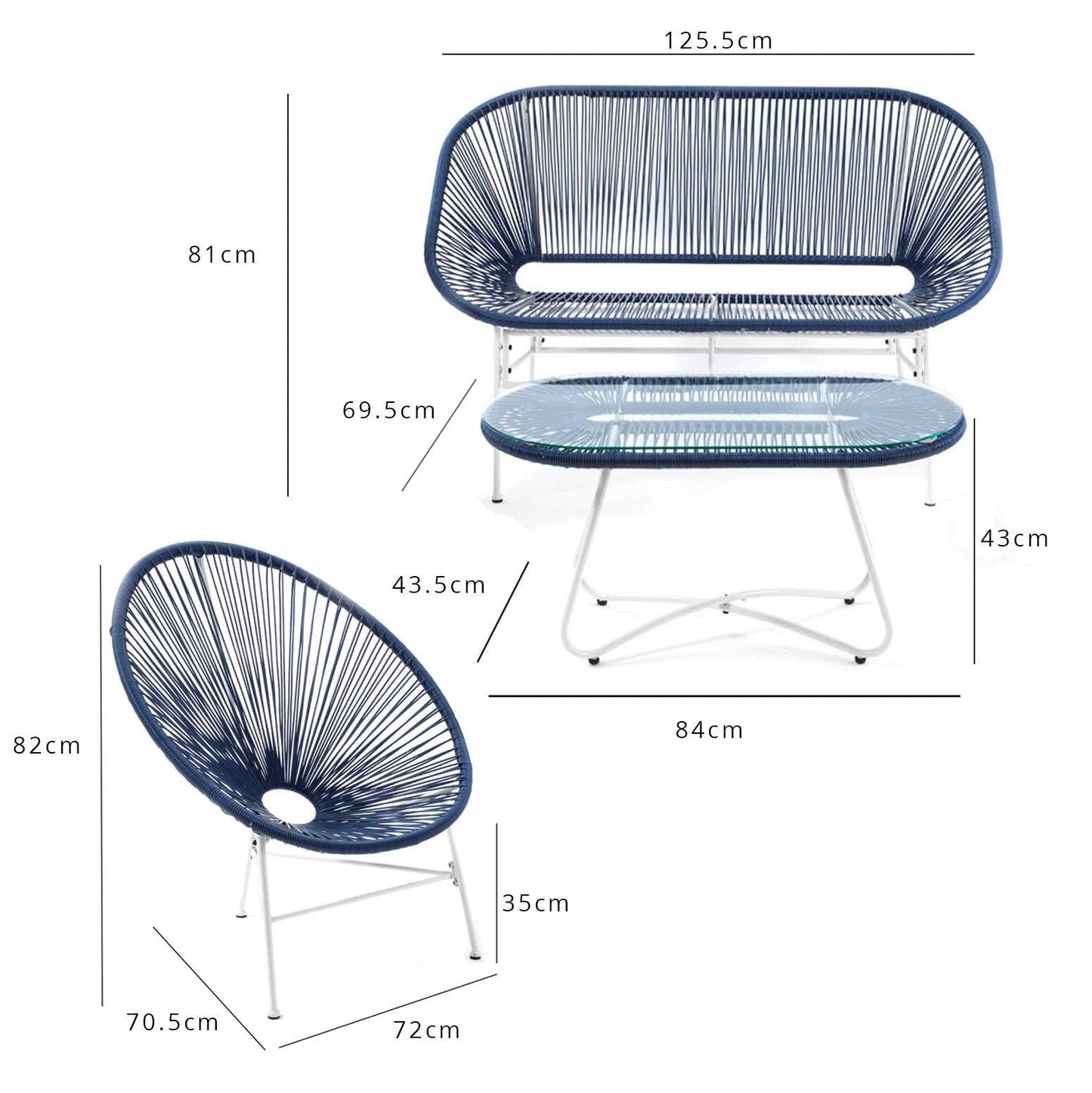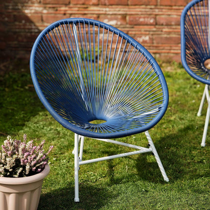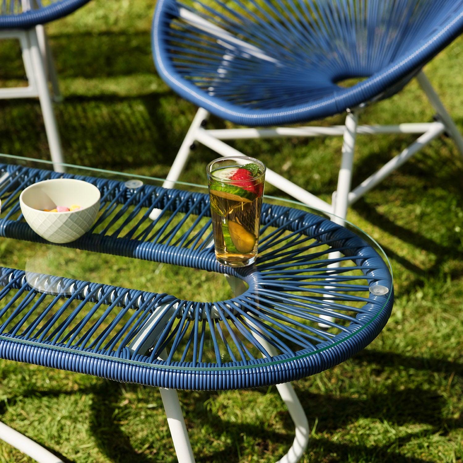 Relax and unwind in style with the Hebe garden lounge set in blue. This fun garden sofa and bistro chair set is perfect for enjoying some afternoon sun. Great for those with smaller gardens, or looking to add a stylish twist to their outdoor space.