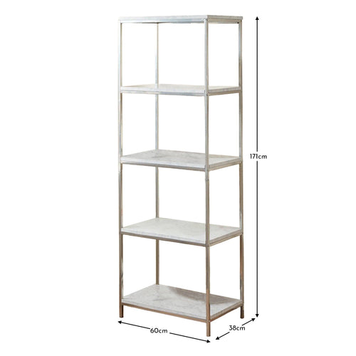 Striking yet understated, this marble and chrome bookcase provides an elegant shelving solution for any home. Complemented with a sleek chrome frame to add a polished feel, this beautiful bookcase is a perfect addition to your furniture collection, blending in with multiple interior styles from industrial to minimal and everything in-between.