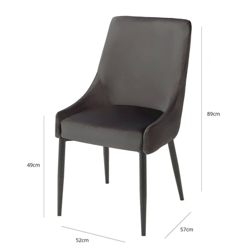 Give your dining space a glamorous touch with the Maeve velvet dining chairs. These soft upholstered dining chairs feature touches of luxury throughout their design. In a  grey velvet finish with black legs, Maeve will help you create a gorgeous dining room.
