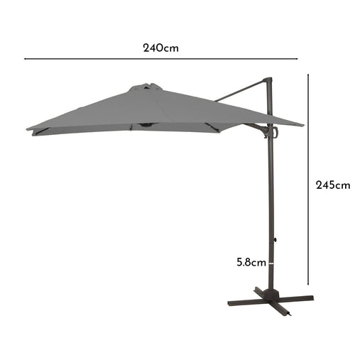 • What's included - Square 2.4m premium LED cantilever parasol in grey.