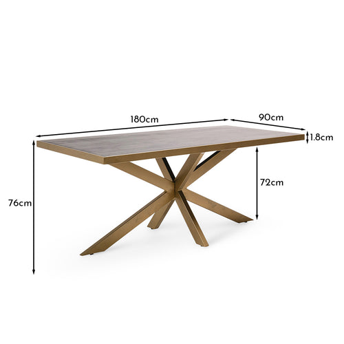 • Design features - Rectangular dining table with gold frame and cross leg design.