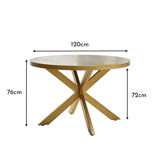The dense and fine grain properties of the jet black mango wood tabletop gives unique character to this round dining table, with no two tables looking the same. Complemented by the gold metal frame and cross leg design, this Rayna black and gold dining table blends elegance with individuality. Pair with our Freya dining chairs to complete the set.