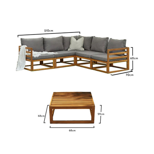 • What's included - Rowan 5 seater wooden garden sofa set with coffee table & grey cushions.