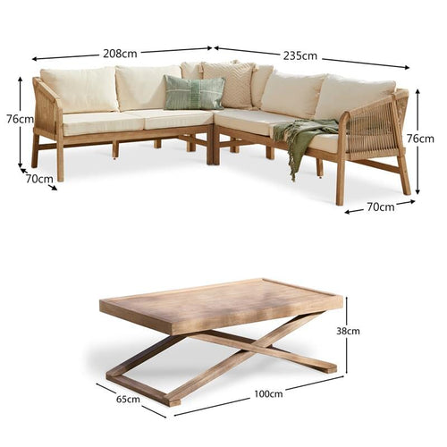 Shiro Wooden Garden Corner Sofa Set with Akira Coffee Table - Laura James