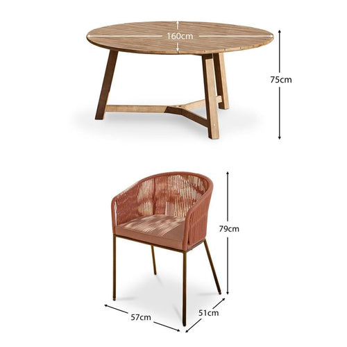 Shiro Wooden Round Dining Table Set with Hali Rope Chair - Clay Pink - Laura James