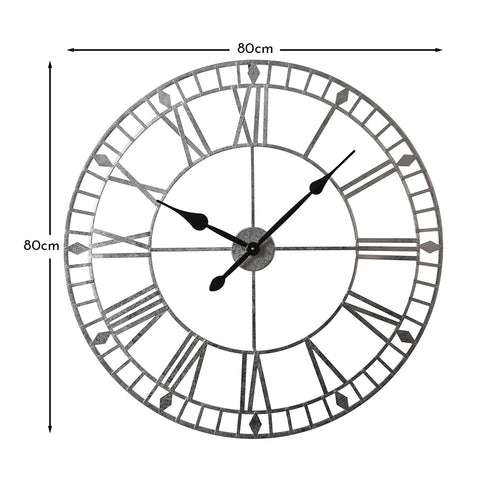 Perfect for adding a chic touch to your living or dining space, this large skeleton clock features roman numerals and can be easily hung in whatever spot you desire. Finished in a sleek silver, this large skeleton wall clock will make a great centerpiece for any room.