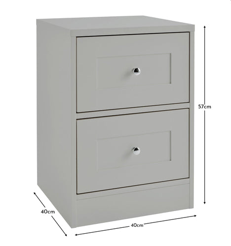 A shaker style bedside table brings a soft element of class and elegance to your bedroom. Our Stevie grey two drawer bedside table features stunning inlay detail and silver handles for a chic finish.