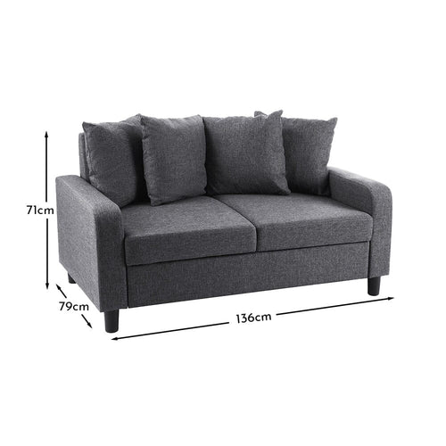 Tracy 2 Seater Sofa - Grey Linen with Black Legs