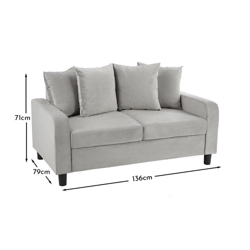 • Design features - Small 2 seater sofa in a soft light grey velvet finish for a modern look.