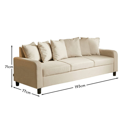 • Design features - Modern soft oatmeal coloured 3 seater sofa with 6 scatter cushions.