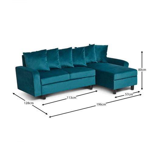 - Design features - Teal velvet corner sofa which can be assembled either right or left hand.