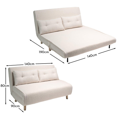 - Una Double Teddy Sprung Sofa Bed - Warm White