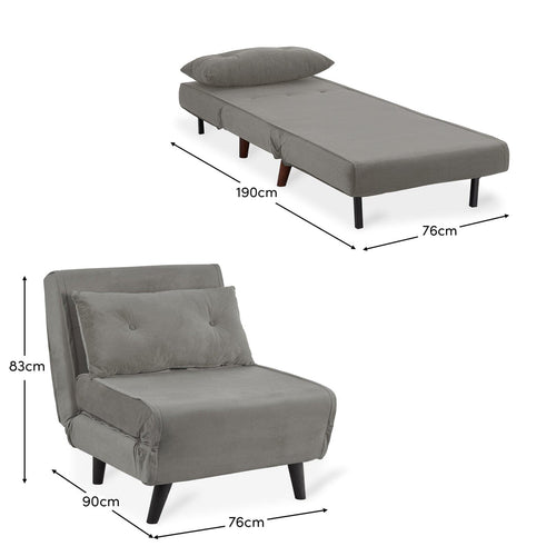 A space-saving hero, the Una single sofa bed in grey velvet is here to help you utilize your small spaces for day and night. With an easy fold out mechanism, this chair transforms into a bed within seconds. The Una features its own cushion, so all you need is a duvet, and your guest is ready for a good night’s sleep.