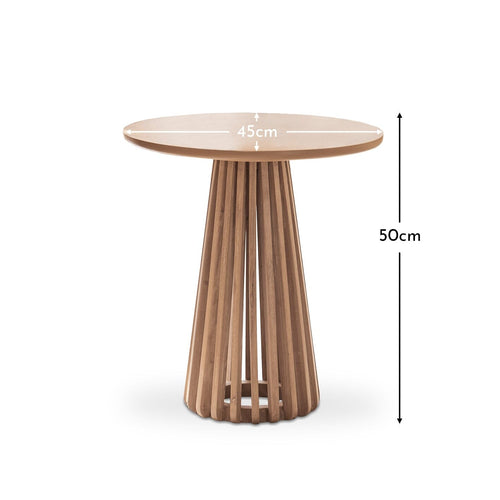 From the much-loved Willow range, in a new colour for 2025, this Willow whitewash wooden side table, is inspired by Japandi interior style. The round tabletop is made from oak veneer the slatted wood pedestal base is made from solid rubberwood, creating a uniquely stylish and practical furniture piece for your living room or bedroom.