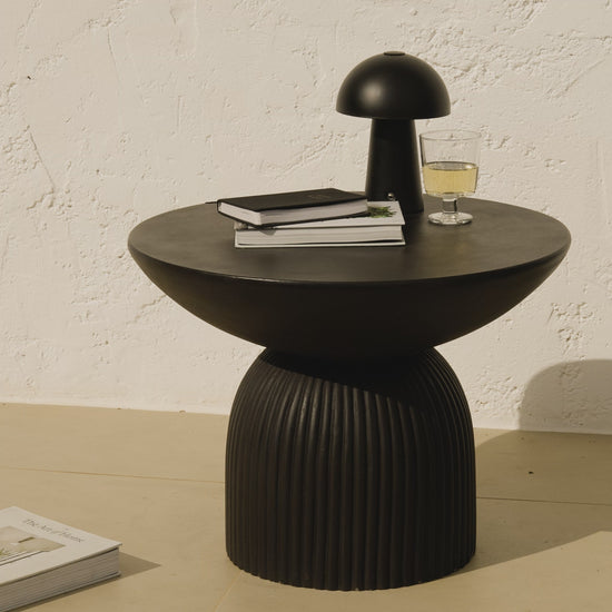 The Zaliki lava black round coffee table is a standout piece with gentle curves, elegant fluting and generous round tabletop. Its unique lava black colour features warm undertones, allowing it to glow in the sunlight. Each Zaliki product is hand pressed into custom moulds, dried for several days, then carefully hand sanded by skilled artisans. This makes each piece unique and exclusive for Laura James meaning you won’t find it anywhere else.